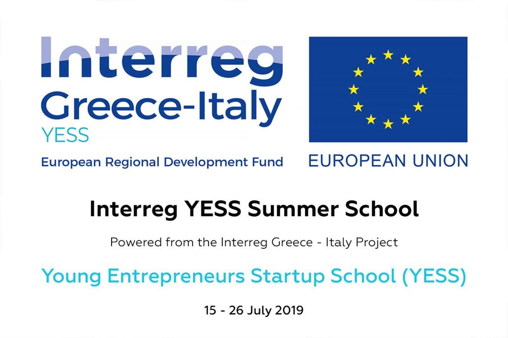 YESS (Young Entrepreneurs Startup School) Project aims at creating the first Cross-Border (CB) incubator between Greece & Italy. Our aim is the promotion of the entrepreneurial spirit and the incubation of new companies and the economic development of the regions. We are seeking for innovative start-ups mainly in the fields of tourism, design, blue growth and e-health. The incubator will provide most of its services both through physical and virtual environment